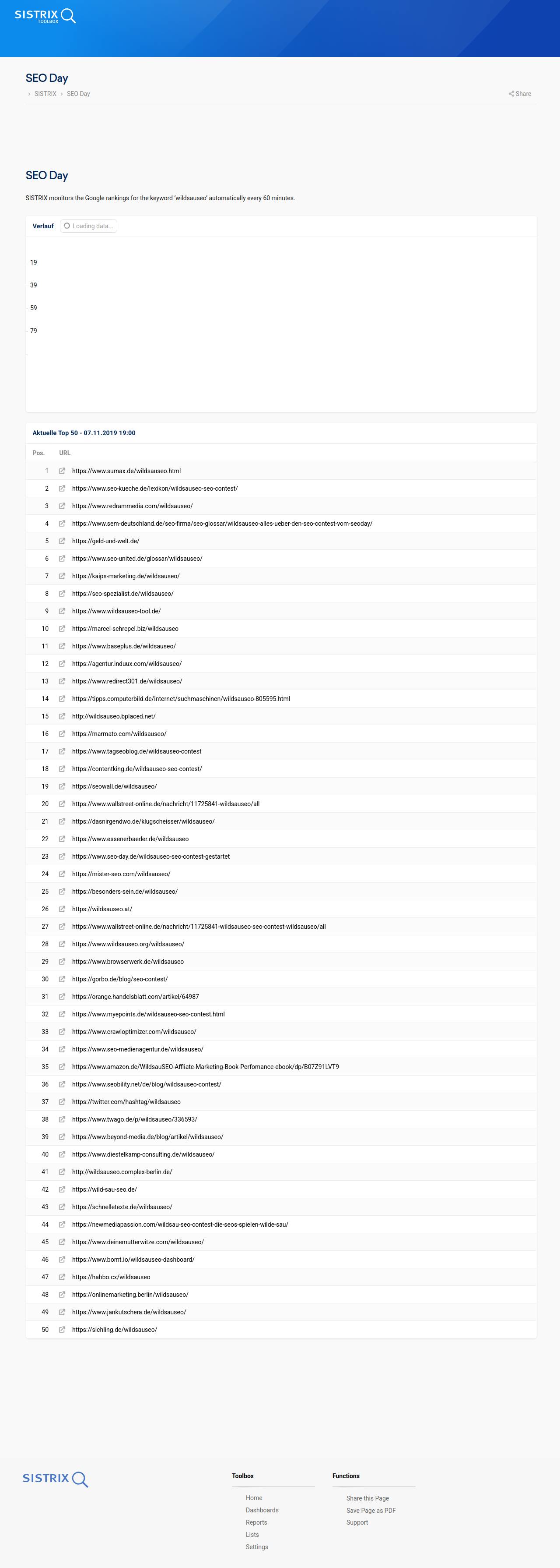 Der Begriff Wildsauseo ist das offizielle Keyword für den SEO-Day SEO Contest im Jahr 2019. Gesucht wird der SEO, der es schafft seine URL am 7.11.2019 auf Platz 1 für den Begriff Wildsauseo bei Google zu positionieren. Gemessen werden die Ergebnisse in diesem Jahr zum ersten Mal von Sistrix (aller 60 Minuten), statt wie die Jahre zuvor von Dynapso. Wie in jedem Jahr, geht es weniger um die mittelmäßigen Preise, als vielmehr um Ruhm und Ehre. Das Regelwerk erlaubt alle Methoden der Optimierung - von Backlinks oder Traffic bis hin zu bösem Spam.